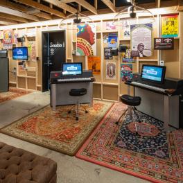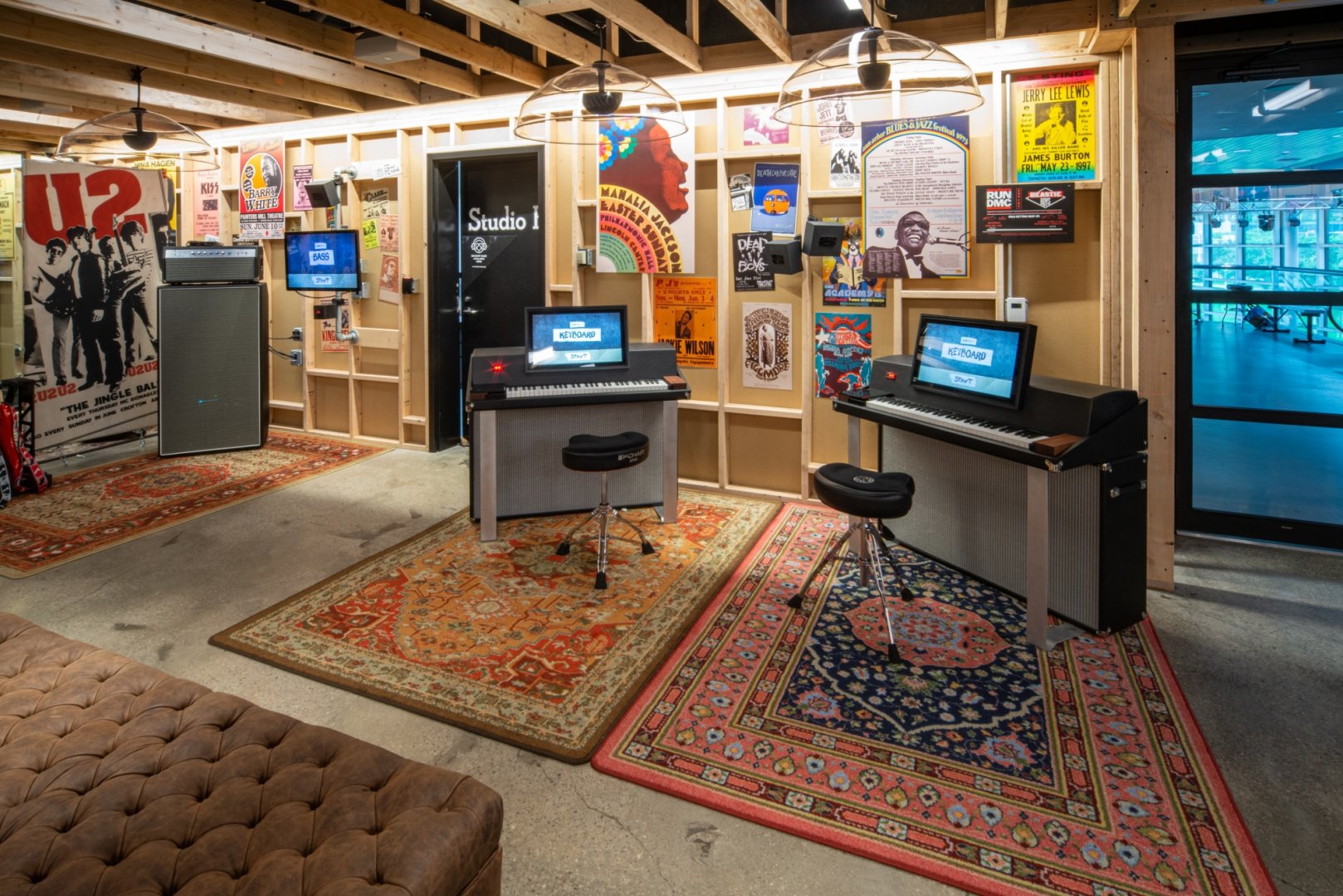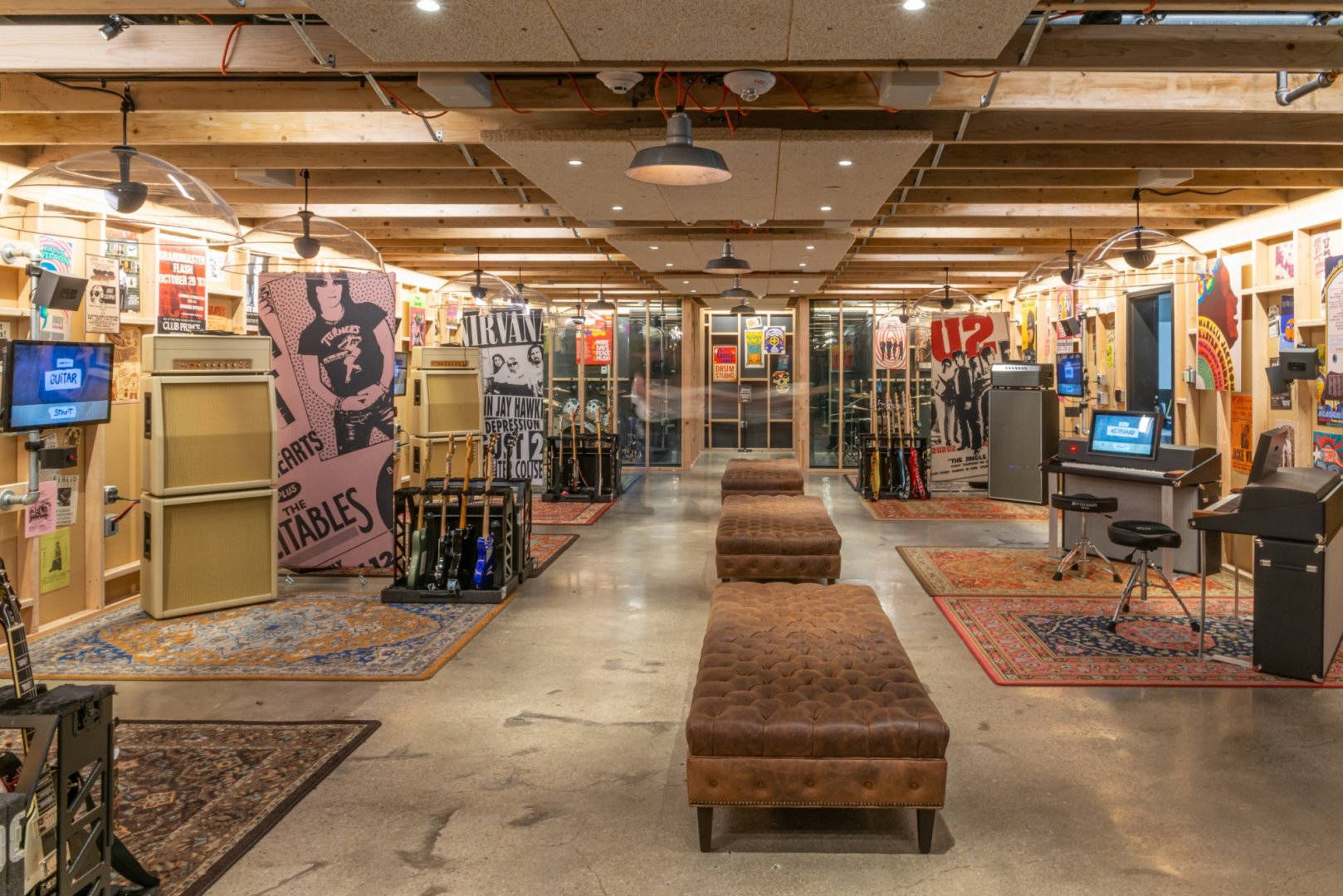 The Garage Exhibit is the first hands-on, fully interactive exhibit for visitors to experience at the Rock & Roll Hall of Fame in Cleveland, Ohio. We collaborated with the Rock Hall to design and build this exhibit to emulate the look and feel you might find in someone’s backyard garage being used for band practice. With areas to pick up and play real instruments, videos to give short lessons on how to play popular riffs from Rock and Roll’s finest, to an area to sit and lounge, The Garage Exhibit allows museum guests to create their very own Garage Band Experience.